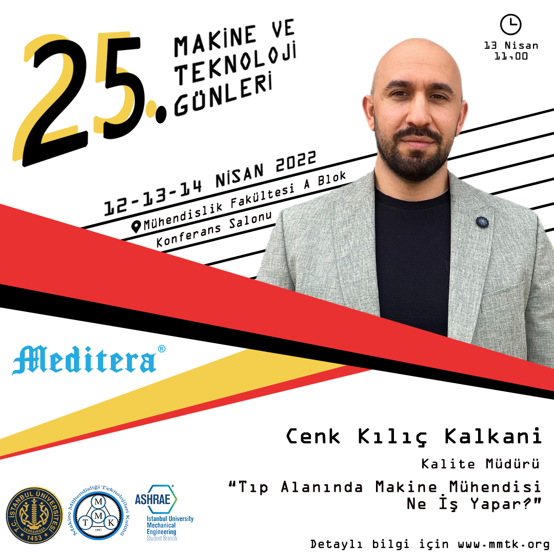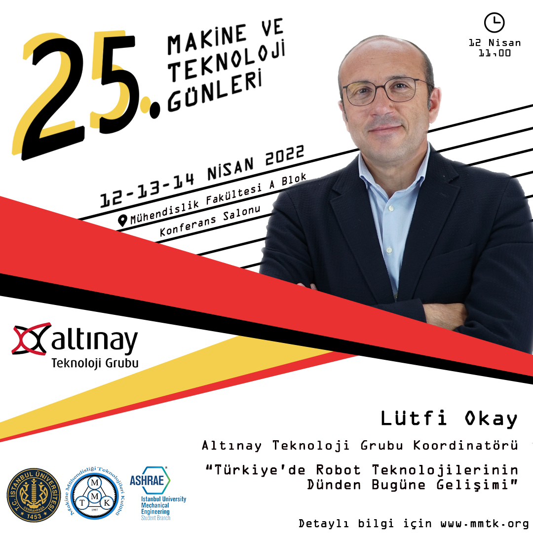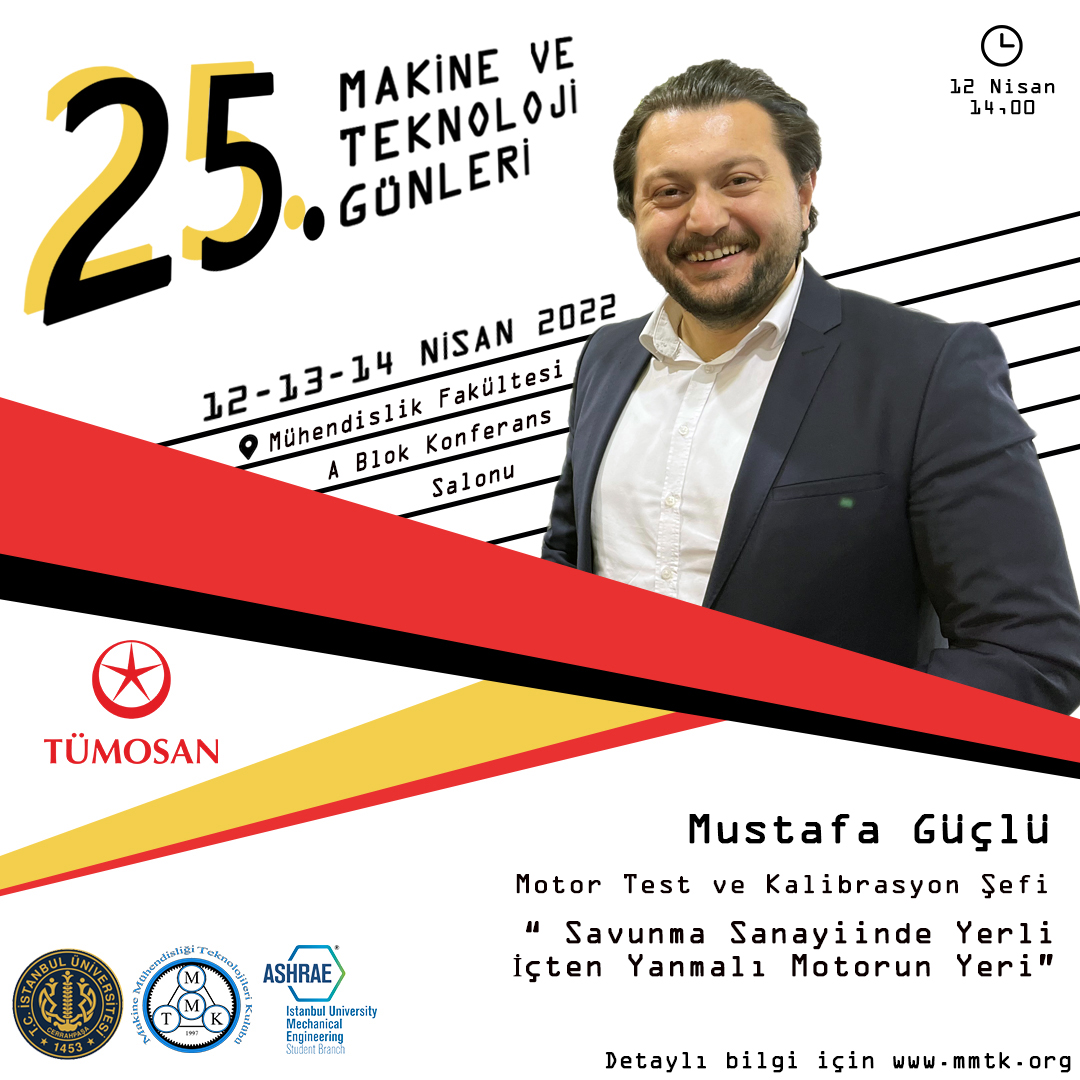 İstanbul Üniversitesi-Cerrahpaşa Makine Mühendisliği Teknolojileri Kulübü olarak düzenlediğimiz 25. Makine ve Teknoloji Günleri, 12-13-14 Nisan 2022 tarihlerinde İstanbul Üniversitesi-Cerrahpaşa Avcılar Kampüsü’nde gerçekleştirilecek.