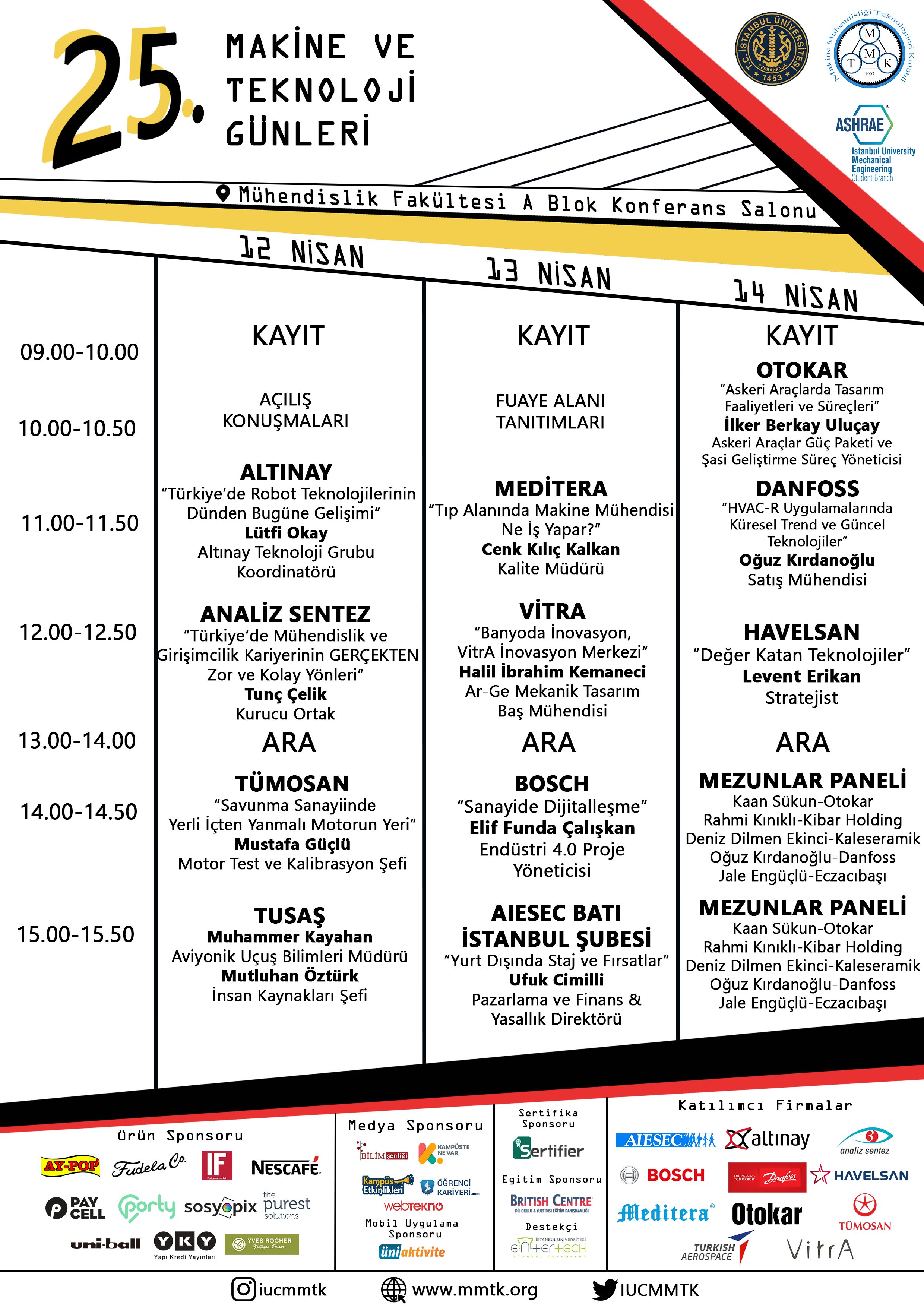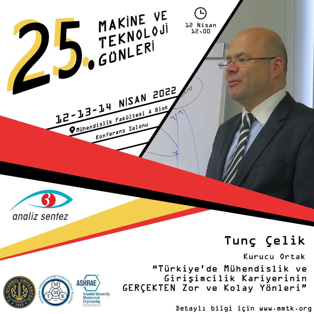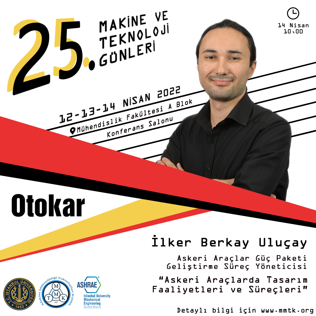 İstanbul Üniversitesi-Cerrahpaşa Makine Mühendisliği Teknolojileri Kulübü olarak düzenlediğimiz 25. Makine ve Teknoloji Günleri, 12-13-14 Nisan 2022 tarihlerinde İstanbul Üniversitesi-Cerrahpaşa Avcılar Kampüsü’nde gerçekleştirilecek.