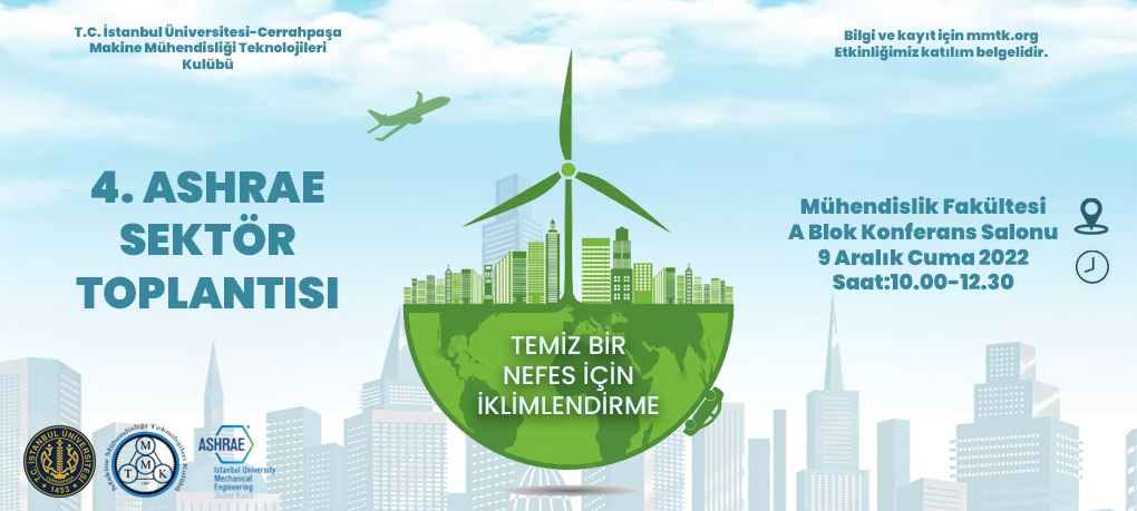 İstanbul Üniversitesi-Cerrahpaşa Makine Mühendisliği Teknolojileri Kulübü olarak düzenlediğimiz 4. ASHRAE Sektör Toplantısı, 9 Aralık 2022 tarihinde İstanbul Üniversitesi-Cerrahpaşa Avcılar Kampüsü’nde gerçekleştirildi.